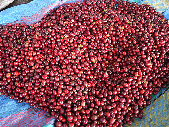 ก็ปรากฏว่าเก็บได้แดงจริงๆ ครับ แต่ได้แค่ที่เห็นนี้ พอผมออกจากสวนนี้ไปดูสวนอื่น พวกคนงานเหล่านี้ก็ขี้เกียจ หมดวันเจ้าของสวนเอากาแฟมาขาย เทกาแฟที่เก็บมาลงในกระบะก็พบว่าไม่แดงเท่าไหร่ ส่วนใหญ่เป็นแค่แดงครึ่งลูก (แดงเทียม) แล้วก็บ่นว่าคนงานไม่อยากเก็บเพราะยาก ได้กาแฟน้อย ขนาดให้ค่าเก็บกิโลละหกบาทยังไม่เอา วันนี้เก็บได้ยี่สิบโล ผมปฏิเสธไม่ซื้อเพราะไม่อยากให้กาแฟไม่ดีมาปะปนกับกาแฟดี เจ้าของสวนก็เลยบอกว่าไม่เอาละ เลิก เก็บไปมั่วๆ แบบนี้แหละ เอาไปแปรรูปแบบมั่วๆ ให้เป็นกะลา รอพ่อค้าเข้ามารับซื้อ มีหลายคนเข้ามาแย่งกันซื้อหน่อยก็เรียกราคาได้
