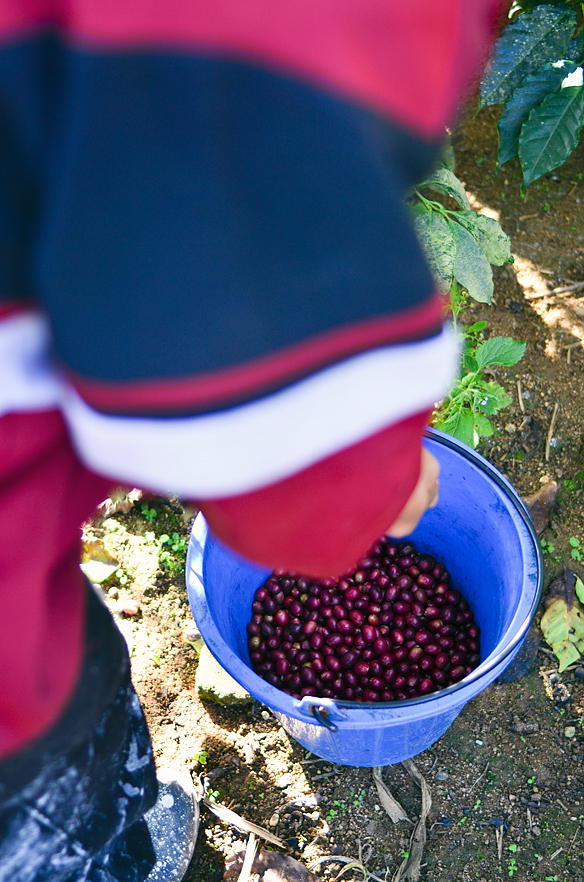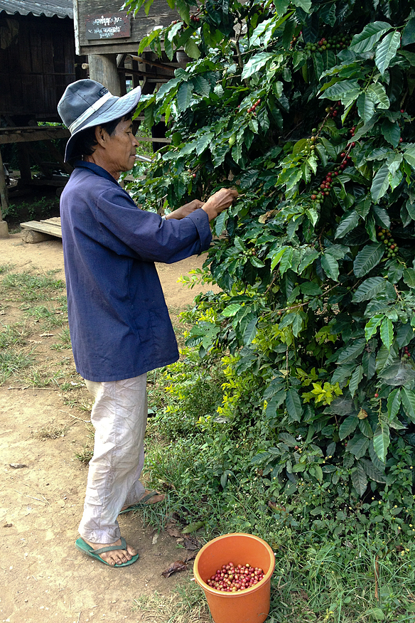 คนที่เคยไปเที่ยวสวนกาแฟมาคงเคยได้ลงมือเก็บกาแฟกันบ้าง จะทราบดีว่าการจะเก็บเฉพาะผลสุกเต็มที่อย่างในภาพด้านบนนั้นไม่ยากเลย แต่จะเสียเวลาหน่อยที่จะต้องมองหาผลที่สุกจริงๆ หากเก็บทุกวันจนชำนาญคุ้นเคยแล้วสามารถเก็บได้วันละเกือบร้อยกิโลเลยทีเดียว เพราะเวลาเด็ดแค่สะกิดนิดเดียวแทบไม่ต้องออกแรง ต้นกาแฟก็ไม่ช้ำ
