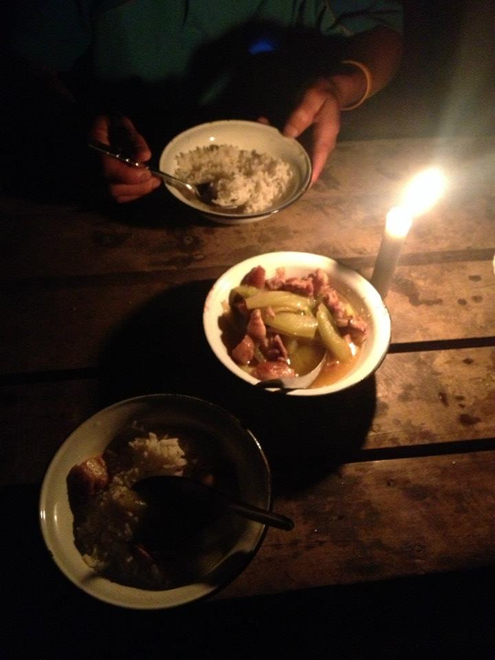 เมื่อยึดสองเครื่องเรียบร้อย เราก็เริ่มติดเครื่องทดสอบดู ที่นี่ไม่มีไฟฟ้าจึงต้องเอาเครื่องฮอนด้าปั่นเครื่องโม่กาแฟ ชาวบ้านไปเก็บกาแฟมาลองเครื่องก็ปรากฏว่าใช้ได้ดี เสร็จภารกิจเย็นนั้นเจ้าหน้าที่อบต.ก็กลับลงไปที่ลุ่มเพราะมีประชุม ส่วนผมจุดเทียนล้อมวงกินข้าวกับชาวบ้านแล้วก็นอนอยู่ในอนามัยนั่นแหละ