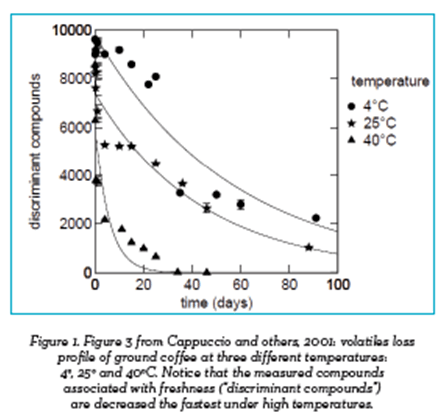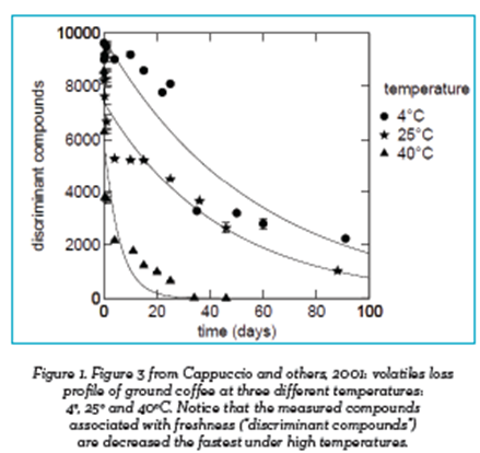 ตัวปัญหาของเรื่องนี้คือแก๊สคาร์บอนไดออกไซด์ที่อยู่ในกาแฟทำให้การสกัดกาแฟทำได้ไม่เต็มที่ เวลากาแฟเพิ่งคั่วมาใหม่ๆจะมีก๊าซคาร์บอนไดออกไซด์เยอะ เวลาน้ำไหลผ่านผงกาแฟจะซึมเข้าไปสกัดรสชาติออกมาได้ยากกว่าเพราะโดนคาร์บอนไดออกไซด์ขัดขวางไว้ รสชาติกาแฟที่ได้ความขมจะไม่มากแต่จะมีกลิ่นควันจากกาแฟคั่วใหม่พอสมควร แต่เมื่อเวลาผ่านไปมีการคายคาร์บอนไดออกไซด์ออกมาจากกาแฟมากขึ้น เวลาน้ำสัมผัสกาแฟจึงแทรกซึมได้ทั่วถึงและดึงรสชาติออกมา