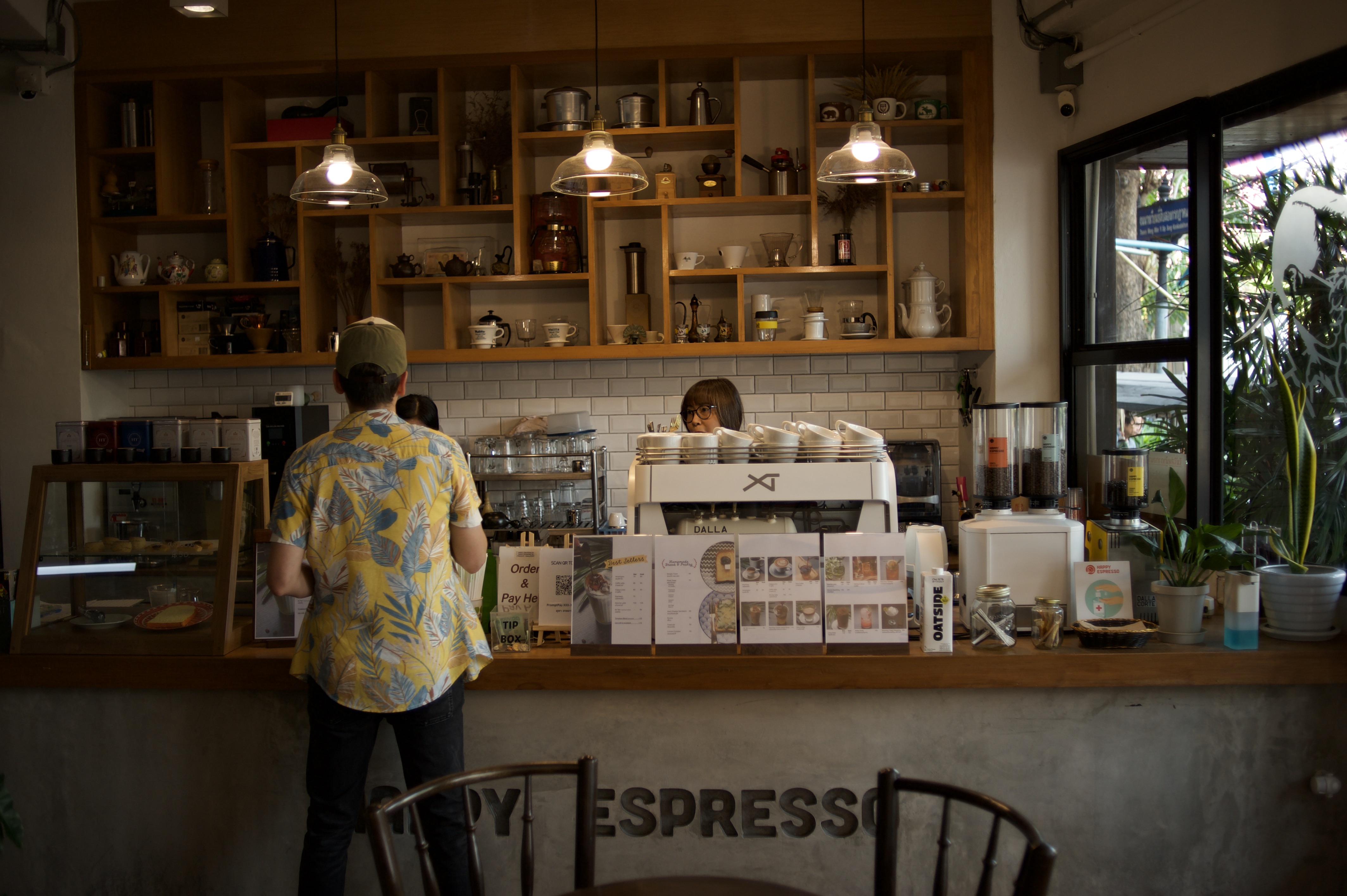เราขอแบ่งห้องนึงของร้านทำป้ายแถววงเวียน 22 มาชงกาแฟขายและเริ่มหัดคั่วกาแฟด้วยตัวเองจากในอินเตอร์เน็ตตั้งแต่ พค. 2005 พออยากมีความรู้มากขึ้นก็ไปทำงานที่บริษัทคั่วกาแฟของฝรั่ง แล้วก็มาเรียนรู้เรื่องการชิมกาแฟอย่างมีแบบแผนจากมาดามเมนอนที่อินเดีย หลังจากนั้นก็กลับมาคั่วกาแฟส่งตามร้านกาแฟอินดี้ต่างๆ แล้วก็ไปเทคคอร์สคั่วกาแฟจากมาเน่ที่เวอร์มอนต์ แล้วก็มาตระเวนเรียนรู้เรื่องกาแฟตามดอยต่างๆ พออยากรู้เรื่องเอสเพรสโซมากขึ้นก็ไปเรียนการคั่วและเบลนด์กาแฟเอสเพรสโซที่อิตาลี แล้วก็กลับมาเน้นคั่วกาแฟขายจริงจัง กับเริ่มขายเครื่องชงกาแฟบ้าง